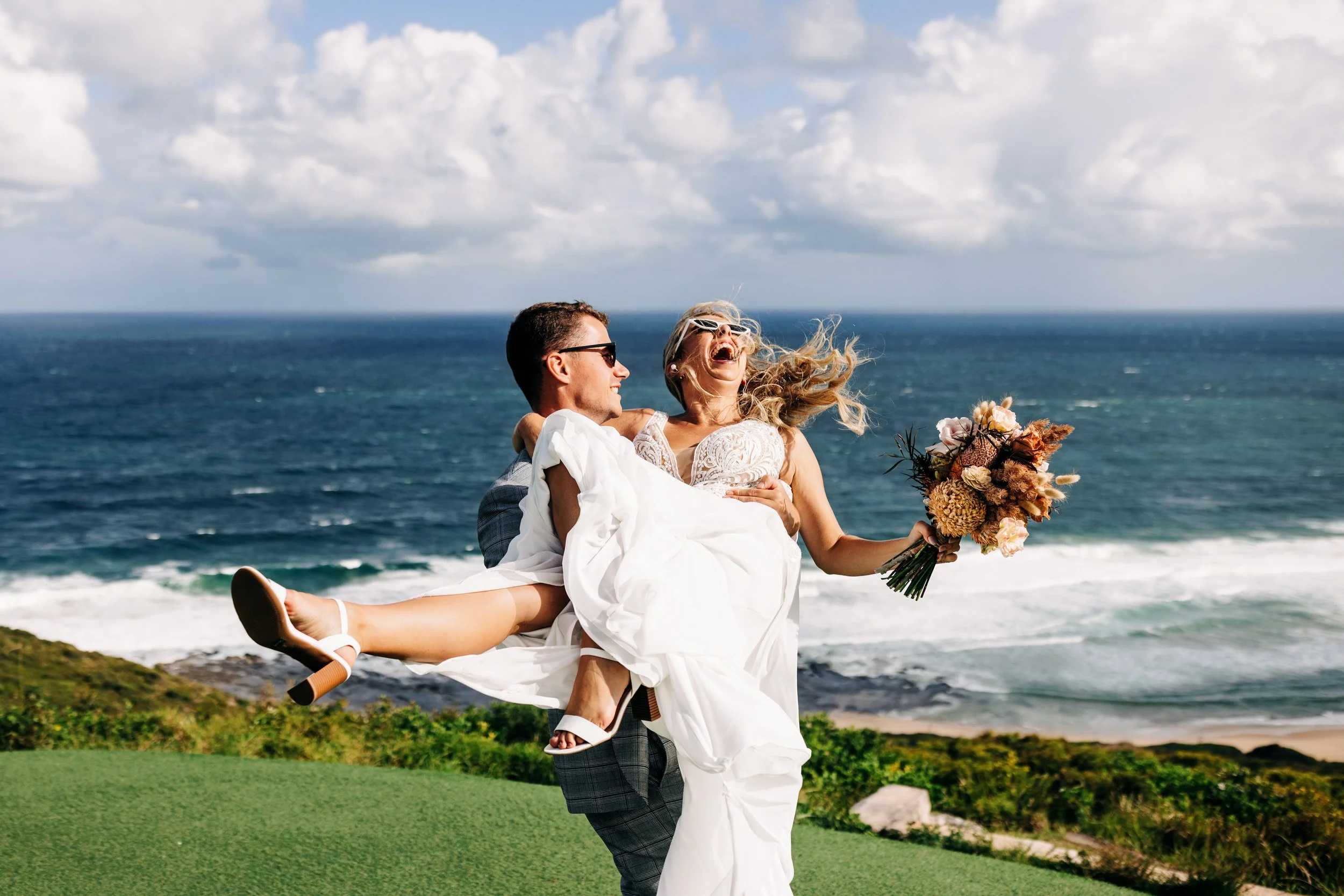 We ticked off a few of our favourite spots to visit, King Edward Park for the ceremony, Hicksons St Lookout for some snazzy shots (see: festival sunnies), Dixon Park SLSC for the reception and made our way out to the beach to catch the sunset for some very adorable, very gorgeous (top job Henry) lovey-dovey snaps.